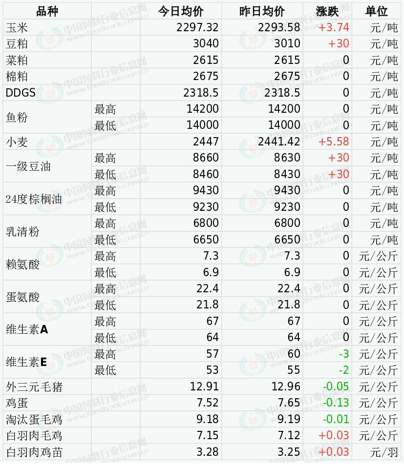 2025年9月22日 国内饲料原料与养殖行情汇总