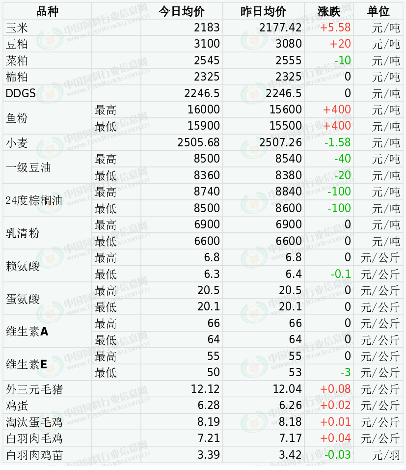 2025年11月3日 国内饲料原料与养殖行情汇总