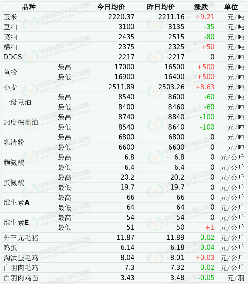 2025年11月17日 国内饲料原料与养殖行情汇总