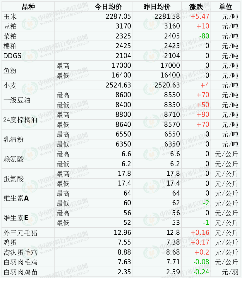 2026年1月19日 国内饲料原料与养殖行情汇总