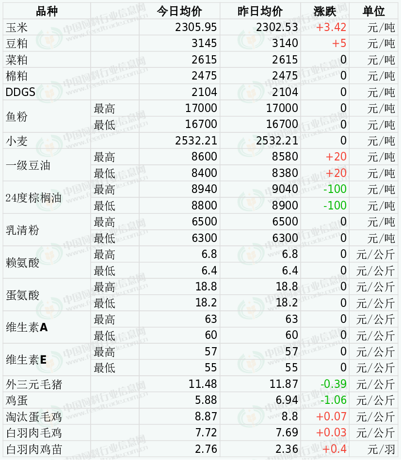 2026年3月2日 国内饲料原料与养殖行情汇总