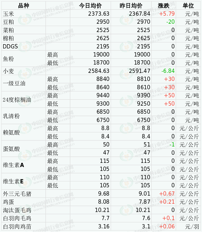 2026年4月20日 国内饲料原料与养殖行情汇总