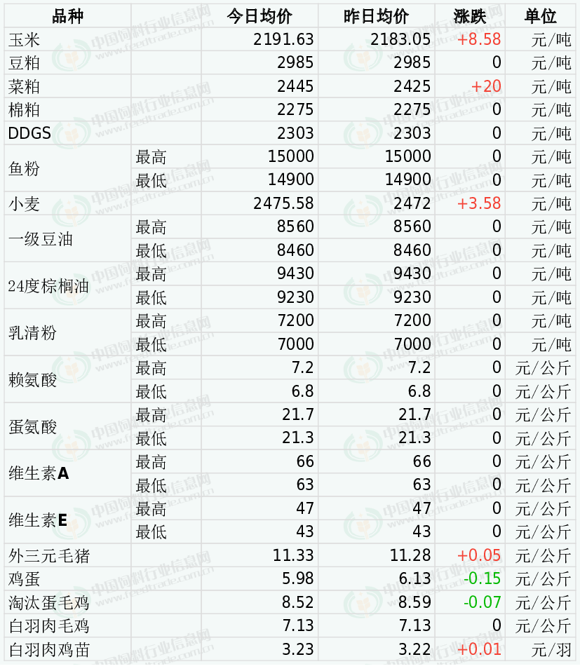 2025年10月13日 国内饲料原料与养殖行情汇总