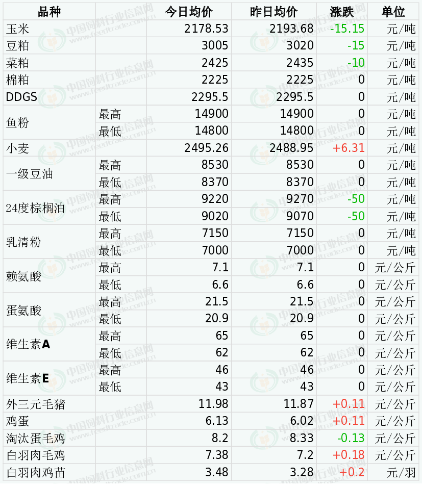 2025年11月3日 国内饲料原料与养殖行情汇总
