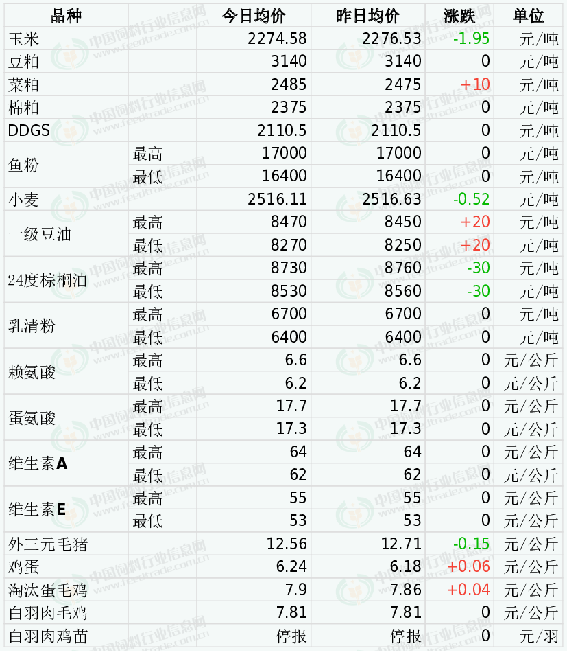 2025年12月29日 国内饲料原料与养殖行情汇总
